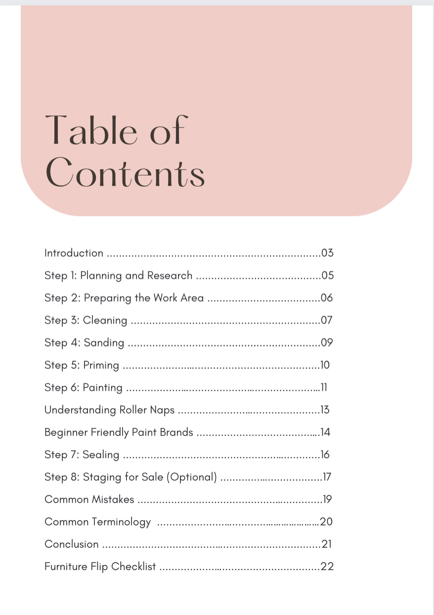 In this 22-page step-by-step beginner guide, you will learn how to revitalize an old piece of furniture whether for your home or preparing it for sale. We'll cover: